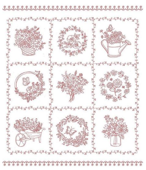 Redwork Floral Panel